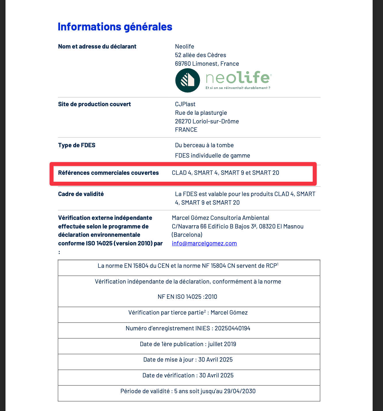 Une fois votre fiche FDES publiée sur le site de l’INIES, elle est valable cinq ans.