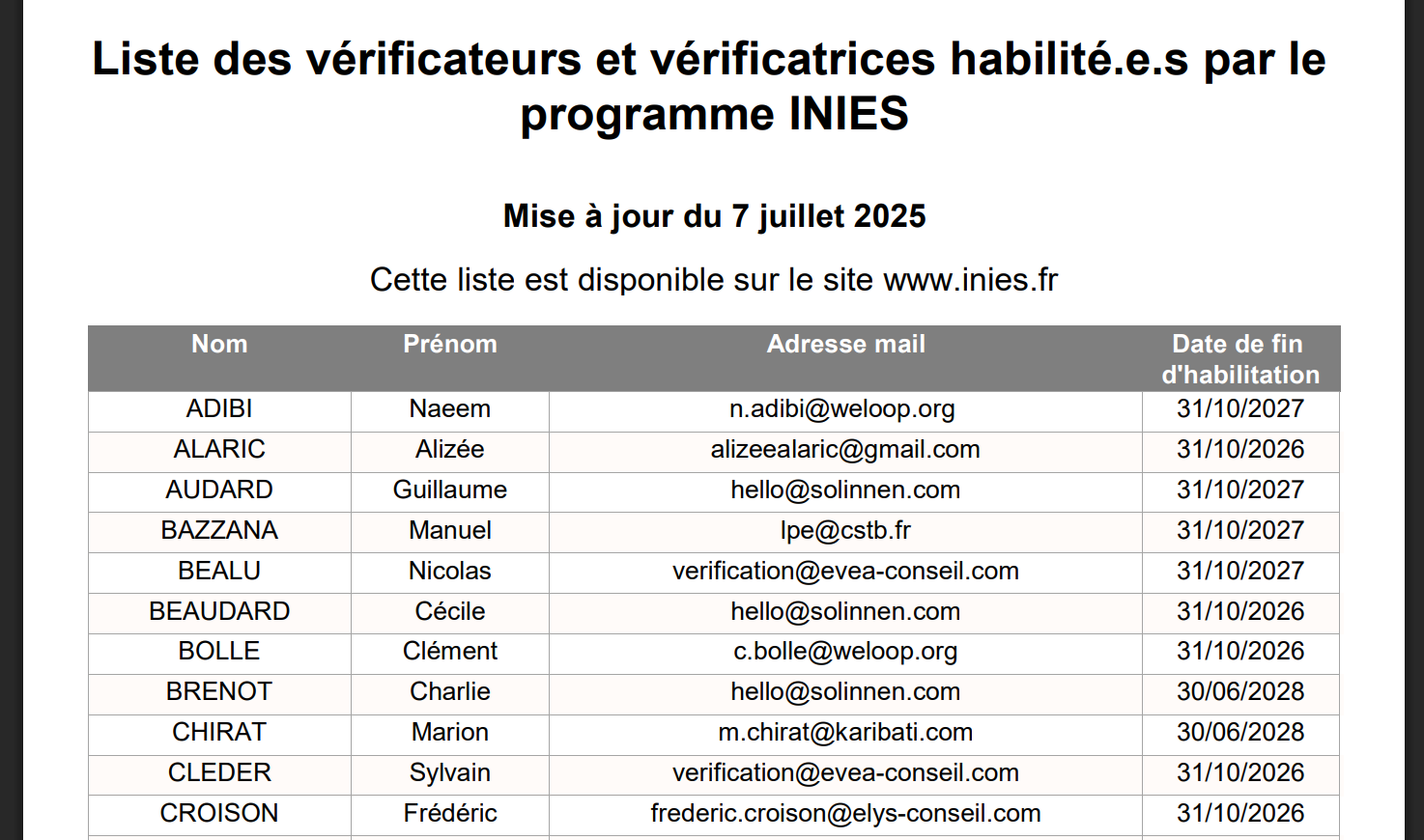 La liste de ces vérificateurs est disponible sur le site de l’association.